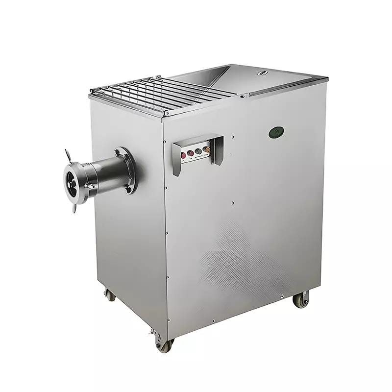 C120C1 is driven by a belt and gear, cl40Cl is a chain + geardrive,Minced-slightly frozen meat at -5”C UnEel System; With FRW,REV switeh: There is a safety switch onthehid. All the materials of the parts ofthis meat prinder that come intocontact with food are made at hign gualty staimiess steel, andthe product desgn fully complies with Eurogean safetystandards. It has an aturactive appearance and a compact structufe, makingit hiphly suitable for use in hotels,meat processing industries,schgols,restaurants or any other food serw ce sectors