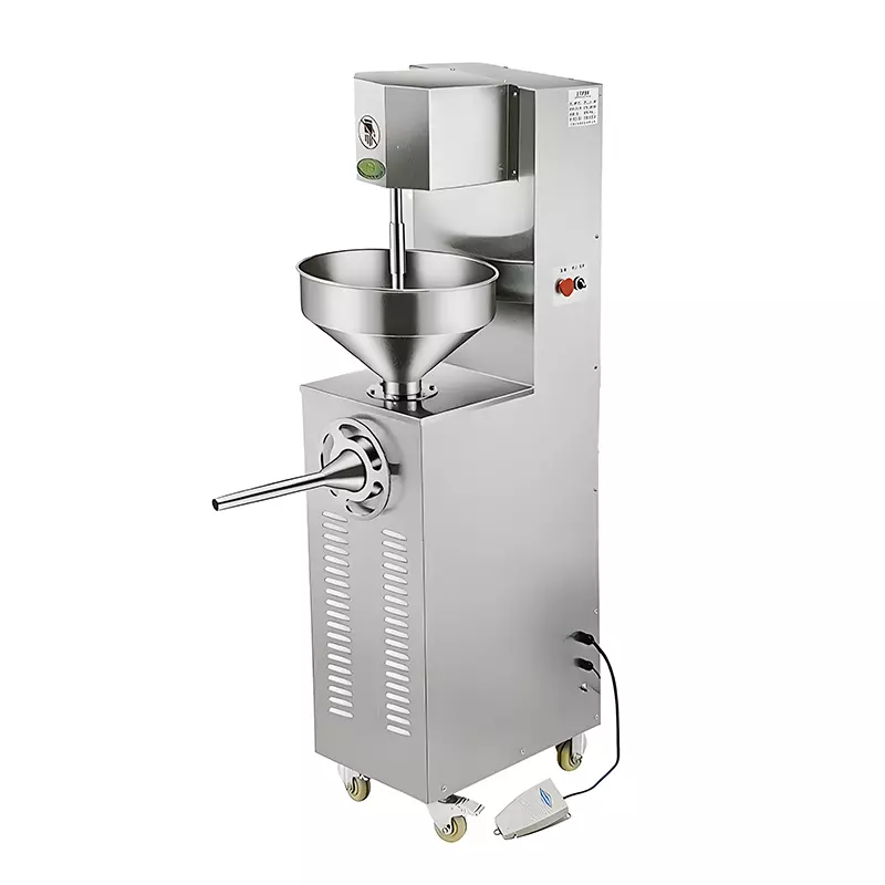 This sausage stuffing machine can fill meat slices, strips and mincedmeat.